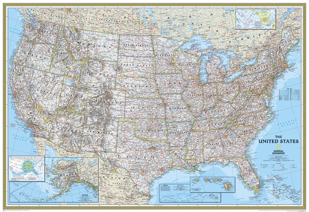 Wandkaart USA - Verenigde Staten, politiek, 110 x 77 cm | National Geographic (9780792293347)