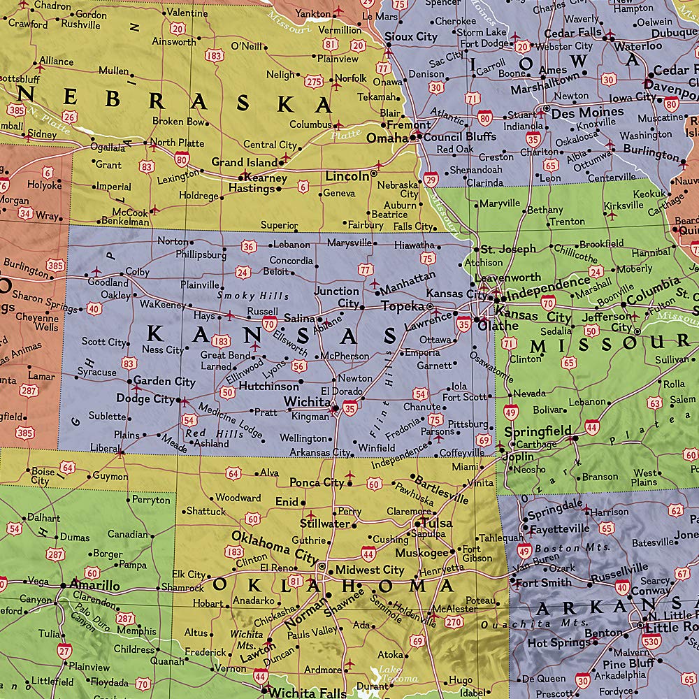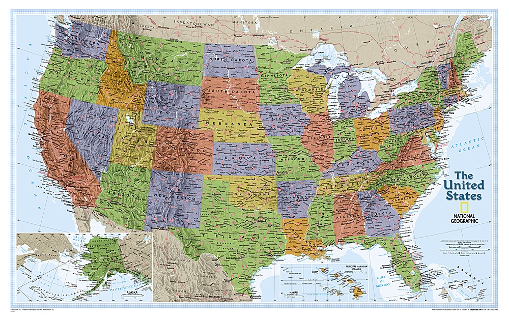 This colorful USA political map clearly shows state boundaries, capitals, major highways, rivers, lakes, and many major cities. Insets show detail of Alaska and Hawaii.