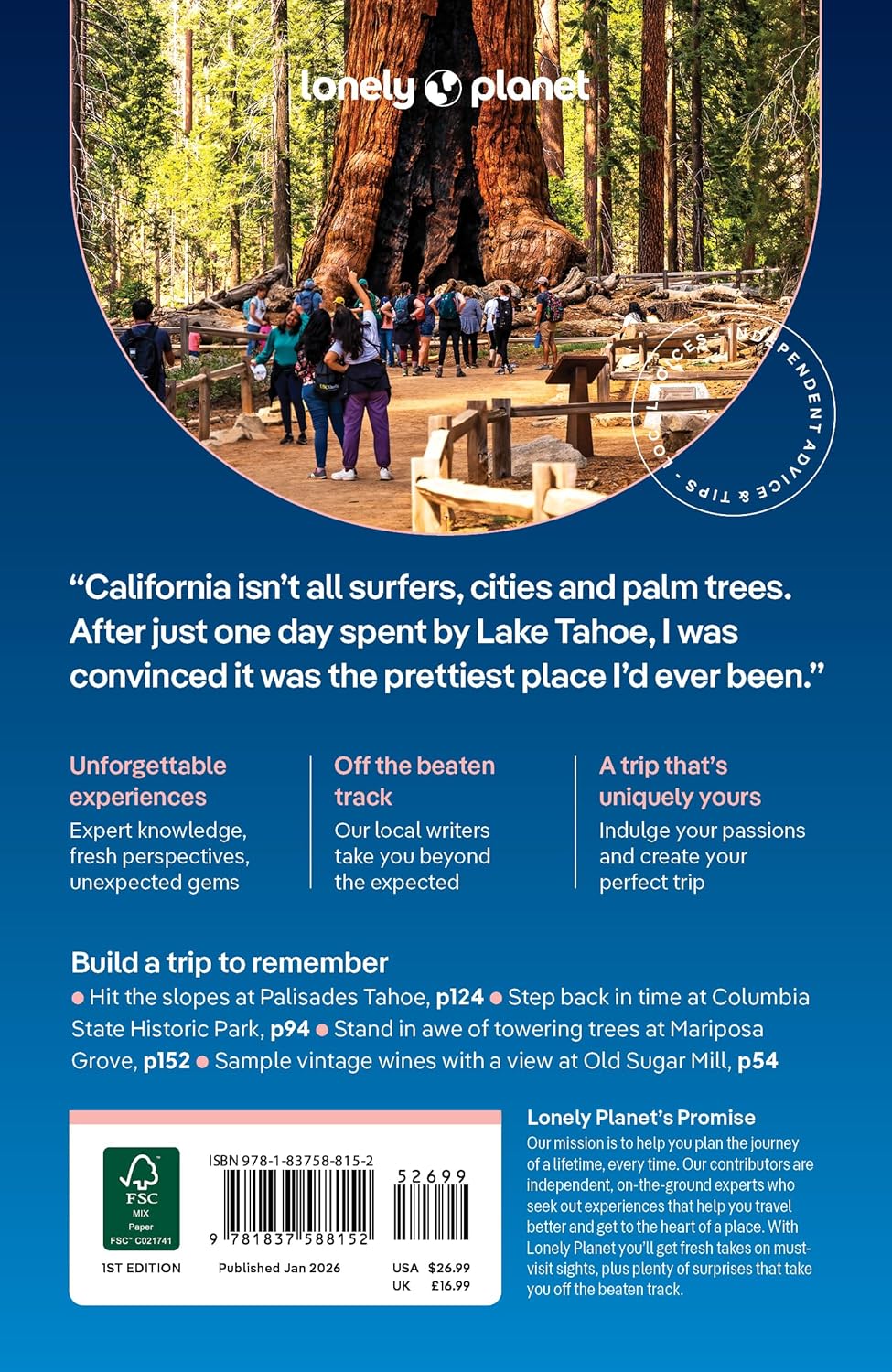 Build a trip to remember with Lonely Planet's Lake Tahoe, Yosemite & Central California travel guide: