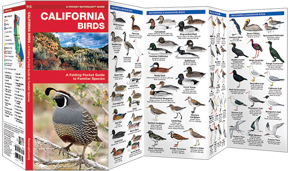 The Golden State is the permanent or migratory home of 644 species of birds, including the state bird: the teardrop, top-knotted California quail. This beautifully illustrated guide highlights over 140 familiar and unique species and includes an ecoregion map featuring prominent bird-viewing areas. Laminated for durability, this lightweight, pocket-sized folding guide is an excellent source of portable information and ideal for field use by visitors and residents alike. Made in the USA.
