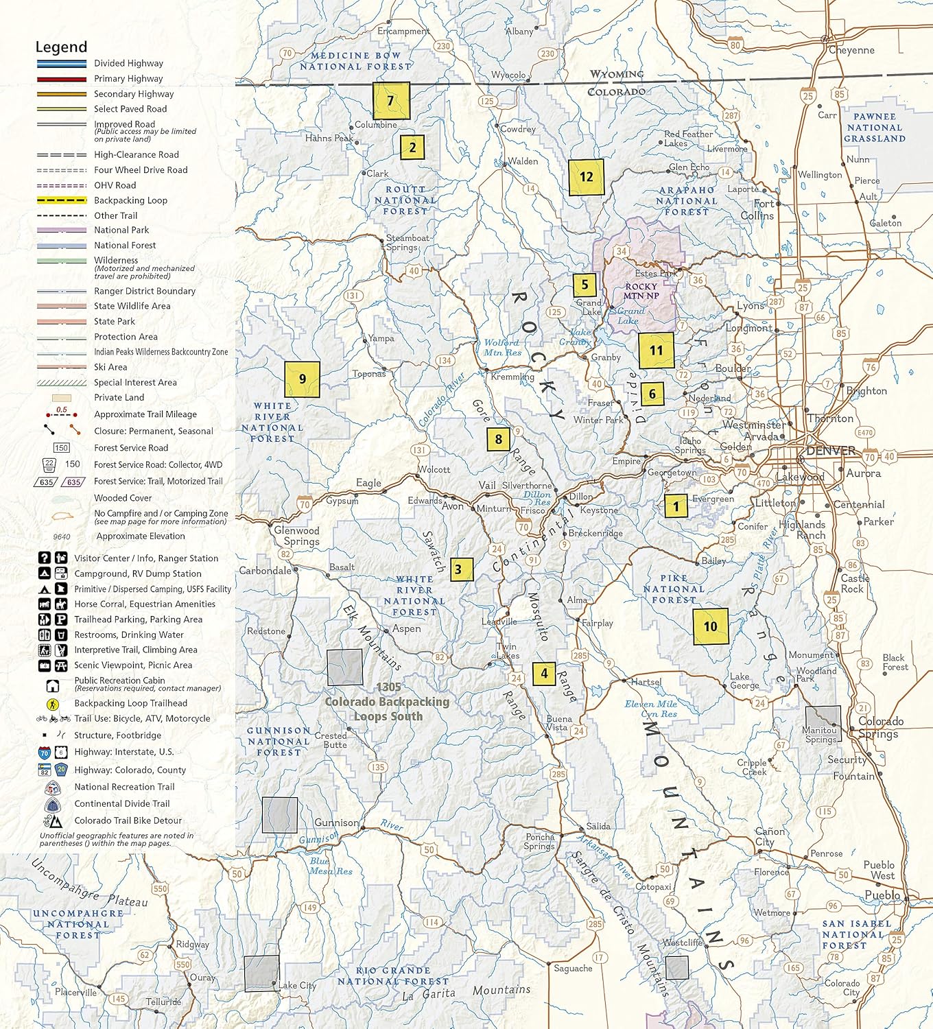 Colorado is renowned for its outdoor recreational opportunities. One of these pastimes is, of course, backcountry hiking. The Colorado Backpack Loops North Topographic Map Guide covers a dozen backpack loops selected by National Geographic staff for their diversity, remoteness, and inspiring vistas. Each page of the Topographic Map Guide includes a detailed map of the trail with directions to the trailhead from the nearest major town as well as a trail profile with mileages to foreshadow the elevation changes that will be met along the way. GPS coordinates are also provided for strategic points along the trail to help with navigation.The trails are organized by the number of nights backpackers can expect to be in the backcountry, from one to more than three. They range from 8 to 25 miles long with elevation gains from 2,000 to over 7,000 feet. Written descriptions of each trail give an overview of the natural features that will be encountered along the way as well as the length, total elevation gain, and nearest town to each trailhead. This Topographic Map Guide will get you into the wild lands of northern Colorado that most hikers in the country can only dream about.