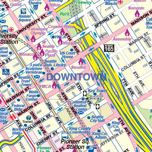 We are pleased to announce the release of a brand new re-working of Seattle, which this time is represented (in its updated format) along with a map of its regional surrounding area on the reverse side. Visitors to the city and locals as well can now have an extremely detailed urban map at 1:12,500 scale as well as a map which we call Northwest USA, covering the Interstate 5 network down to the California border and going east into the Cascades and south-east into Oregon, with its northern extremity ending at Vancouver. Seattle is one of the largest and most prosperous cities in America, home to Boeing Aircraft, Microsoft, and Starbuck's Coffee. With four million people in its immediate area, the city offers history, modernality, and nature, with dormant volcano Mount Rainier being right on its doorstep. Sea-Tac Airport is a major hub for flights to Europe, Asia, and Alaska, and the city, the unofficial twin to Vancouver, is an ideal spot for exploring the Pacific North West (which will be the focus of a forthcoming ITMB map).