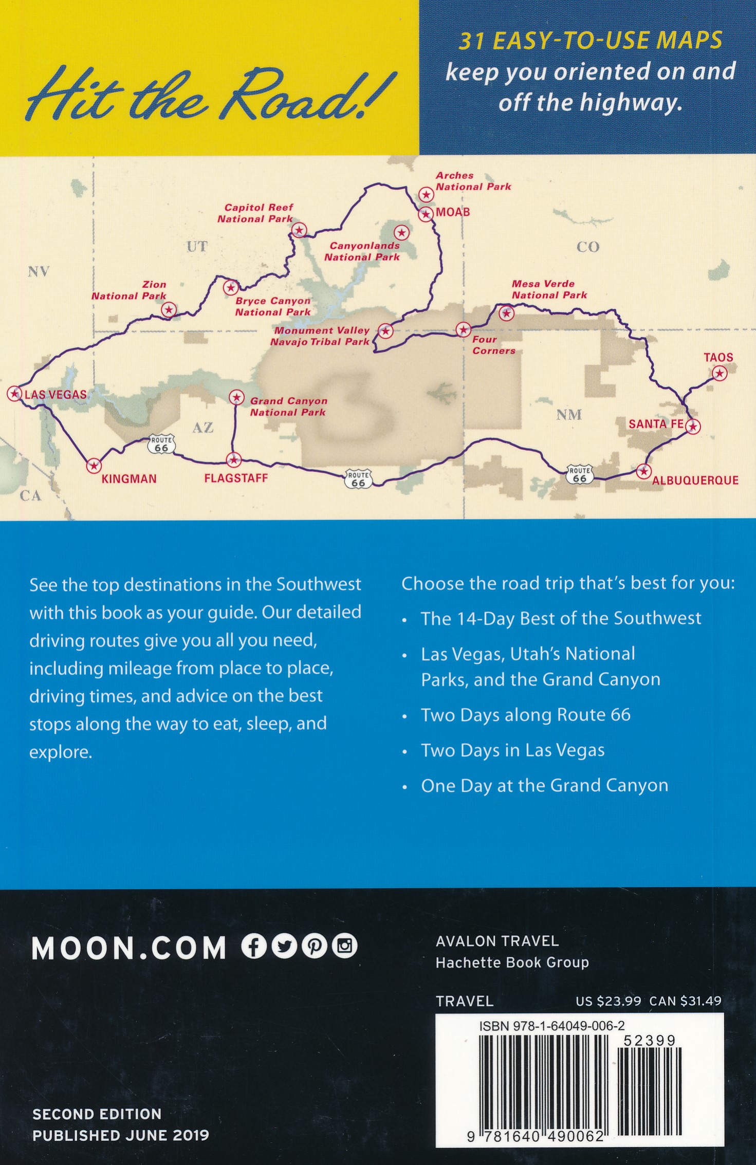 - Moon Southwest Road Trip covers: New Mexico, Colorado, Utah, Arizona, and Nevada