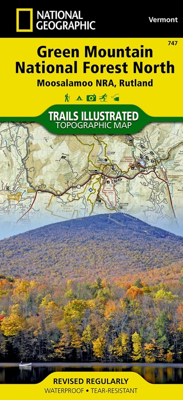 National Geographic's Green Mountain National Forest North Trails Illustrated topographic map is the most comprehensive available for outdoor enthusiasts of all types. Designed to be easy-to-read, yet highly detailed – this map includes a comprehensive road and trail network distinguishing between major, secondary and 4x4 roads, hiking, horse, biking, multi-use and non-motorized winter trails. All forest roads are labeled with their official road number and trails are clearly identified with their given name. Land management boundaries are color-coded showing National Forest, Ranger District, Wilderness Areas, Conservation Areas and more, plus the locations of private land within the Green Mountain National Forest. The renowned Appalachian Trail, Catamount Trail, and Long Trails are highlighted on the map.