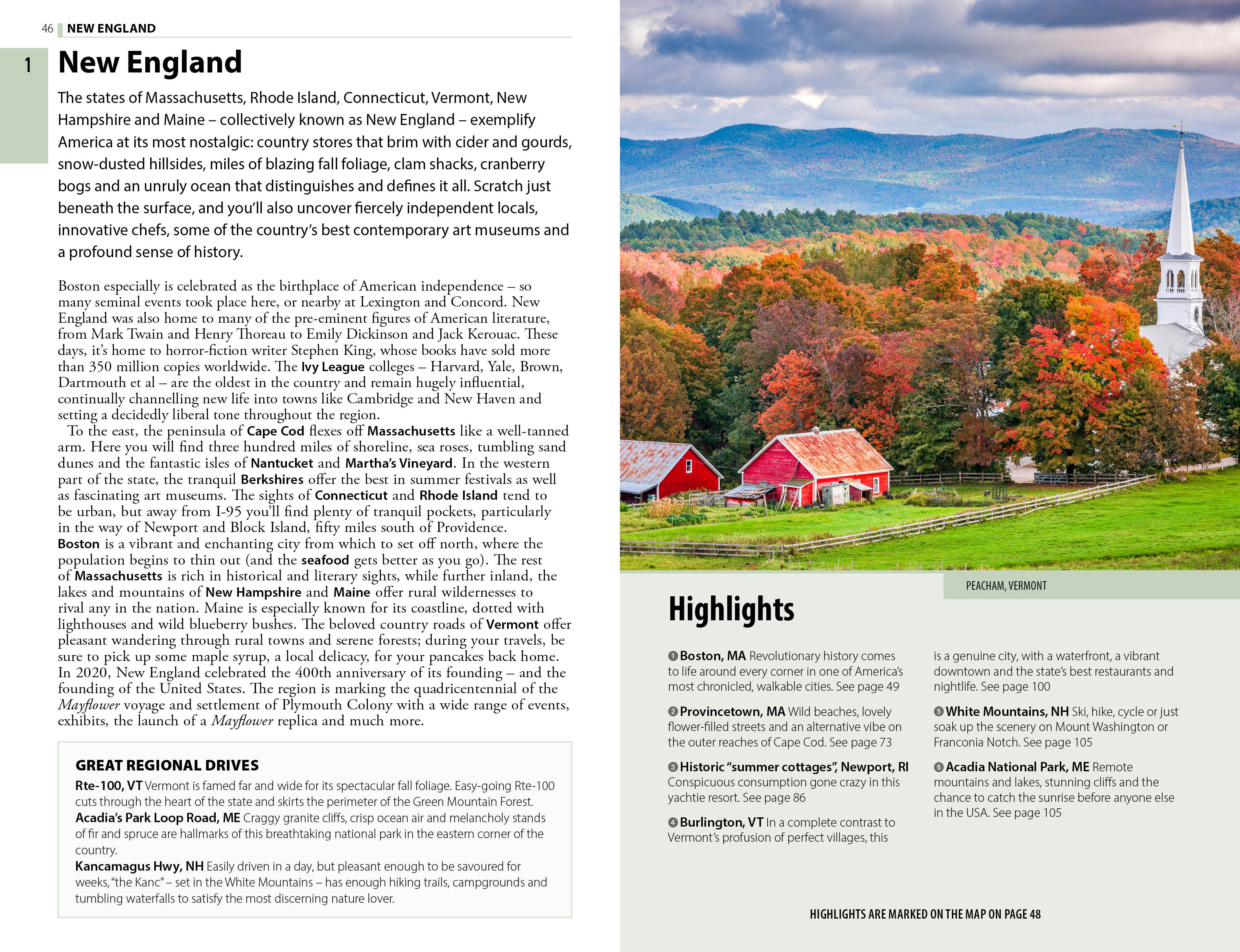 Comprehensive 'Contexts' chapter features fascinating insights into New England, with coverage of history, religion, ethnic groups, environment, wildlife and books, plus a handy language section and glossary.
