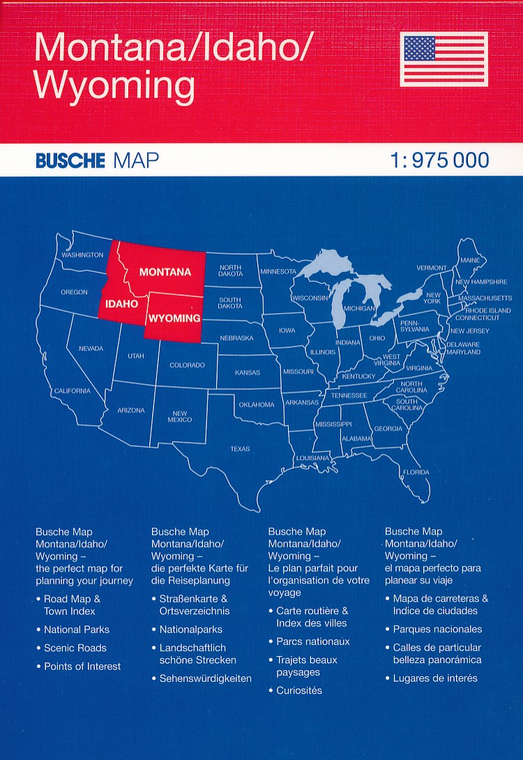 Wegenkaart - landkaart Montana - Idaho - Wyoming | Busche Map (9783897643857)