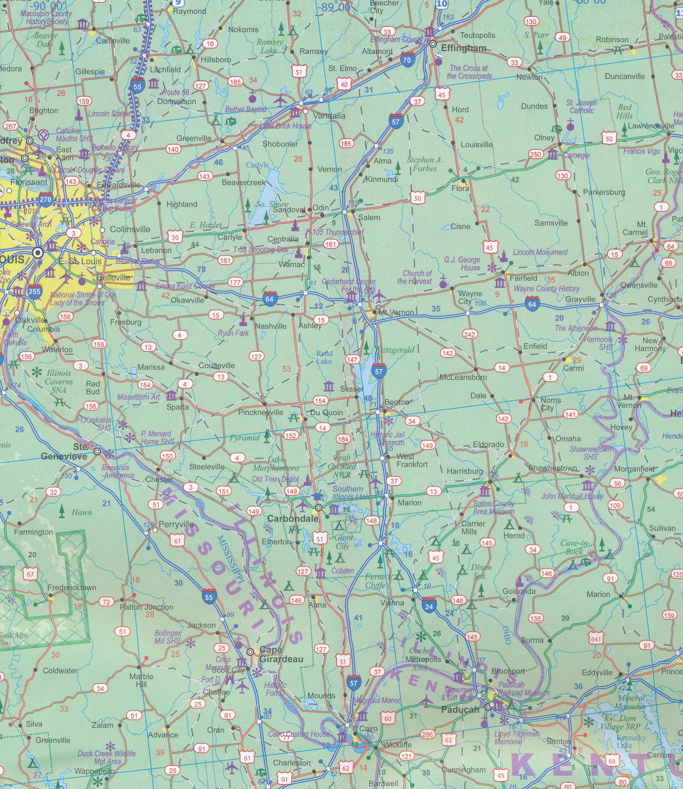 This is the third River map that we have published (the Amazon and Nile having been in print for several years). Old Miss’ is one of America’s paramount features. Starting from its delta in New Orleans, side one covers the states of Louisiana, Mississippi, and Arkansas as it passes Memphis and St. Louis, where it intersects with Route 66. The second side continues north through Illinois, Iowa, Wisconsin, and Minnesota to Minneapolis to its origins near Grand Rapids. This is essentially the area passed over to the Americans by Napoleon Bonaparte in exchange for money he desperately needed to carry on his wars to dominate Europe. The Louisiana Purchase tripled the size of the United States in 1803 and ended the strife that had bedevilled British North American realities from the 1740s. As a result, this map represents the true heartland of America, replete with history and the American dream. Coverage is from the Canadian border to the Gulf of Mexico and from Chicago west to Kansas City. A list of Top Attractions is included.