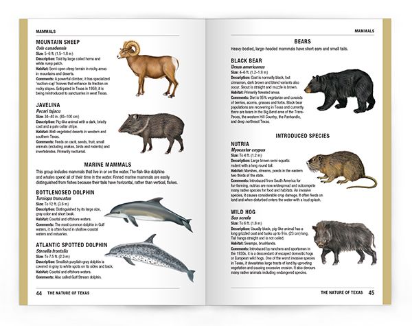 The largest state in the continental US, Texas hosts more than 1000 species of plants and animals. The Nature of Texas includes a memorable essay by James C. Rettie, who worked for the National Forest Service in 1948. In a flash of brilliance, he converted the statistics from an existing government pamphlet on soil erosion into an analogy for the ages. His essay inspires us all to recognize the fleeting time and fragile state of the natural world around us. This field guide introduces readers to common plants and animals and highlights the diversity of species found in Texas with more than 350 full color illustrations, 9 maps featuring the major wildlife viewing destinations and parks in different parts of the state. Checklists and full indices are provided so that serious citizen scientists and nature watchers can track their viewing experiences.