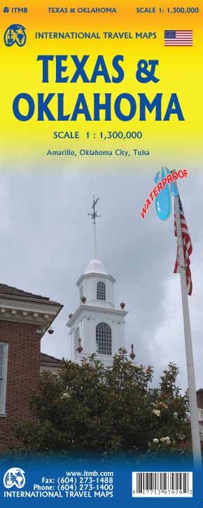 ITMB is pleased to announce the newest addition to our range of titles on the USA. Increasingly, we are developing our artwork to cover the larger states attractively and comprehensively, but also, we hope sensibly. Texas and Oklahoma share a common heritage of having been formed out of land taken from others through the long-held policy of Manifest Destiny. Today, Texas is the second largest State in the union (after Alaska), and is the only State to have previously been an independent country. It also includes the oldest urban area in the USA, Presidio, founded by the Spaniards to guard the ford over the Rio Grande. Because of its shape, and the natural proximity of the State of Oklahoma along its northern edge, combining the two States just made sense. The map is presented double-sided (top half/bottom half) on waterproof paper that is durable and tear-resistant. There was not as much room for inset maps as we had hoped, but good-sized urban map of Amarillo, Tulsa, and Oklahoma City are included. The map has two covers, one for each State, for easier display; both States are done at the same scale.