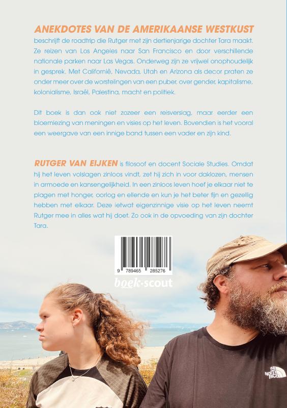 Anekdotes van de Amerikaanse westkust beschrijft de roadtrip die Rutger met zijn dertienjarige dochter Tara maakt. Ze reizen van Los Angeles naar San Francisco en door verschillende nationale parken naar Las Vegas. Onderweg zijn ze vrijwel onophoudelijk in gesprek. Met Californië, Nevada, Utah en Arizona als decor praten ze onder meer over de worstelingen van een puber, over gender, kapitalisme, kolonialisme, Israël, Palestina, macht en politiek. Dit boek is dan ook niet zozeer een reisverslag, maar eerder een bloemlezing van meningen en visies op het leven. Bovendien is het vooral een weergave van een innige band tussen een vader en zijn kind.