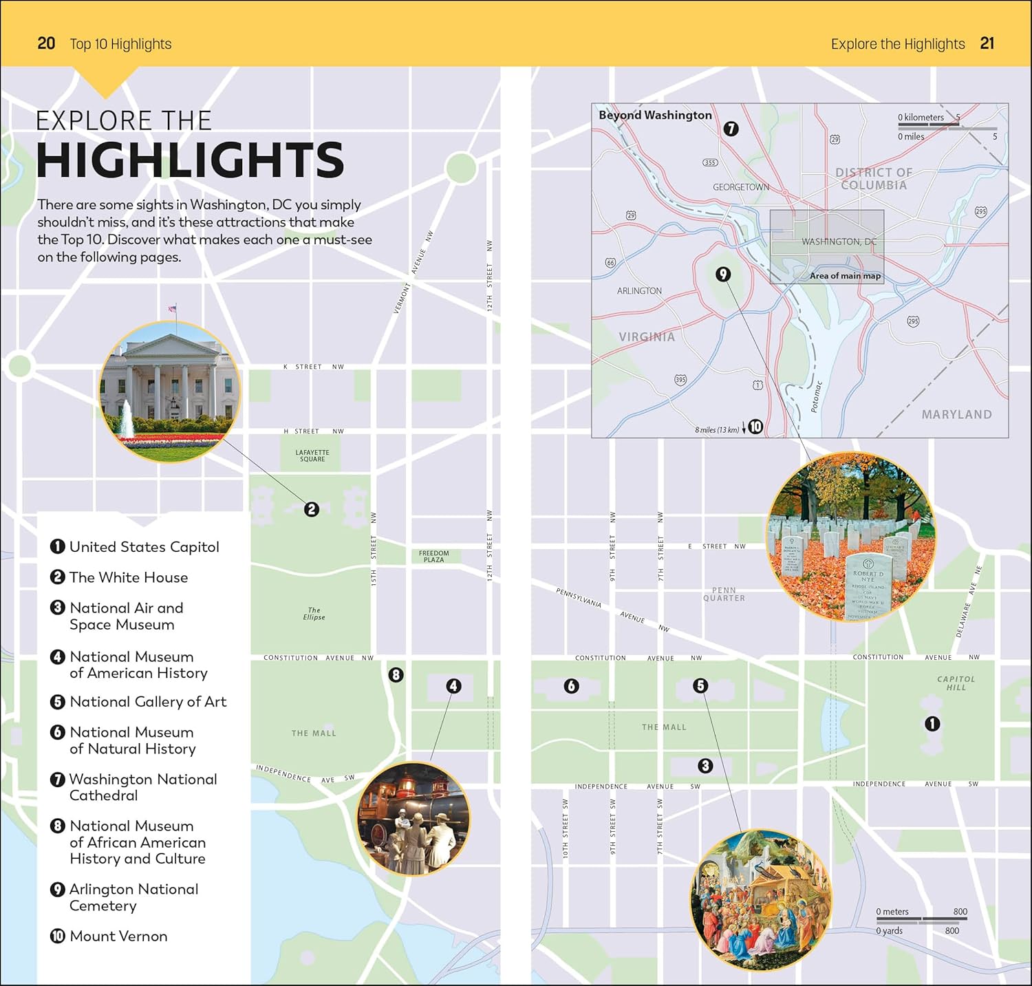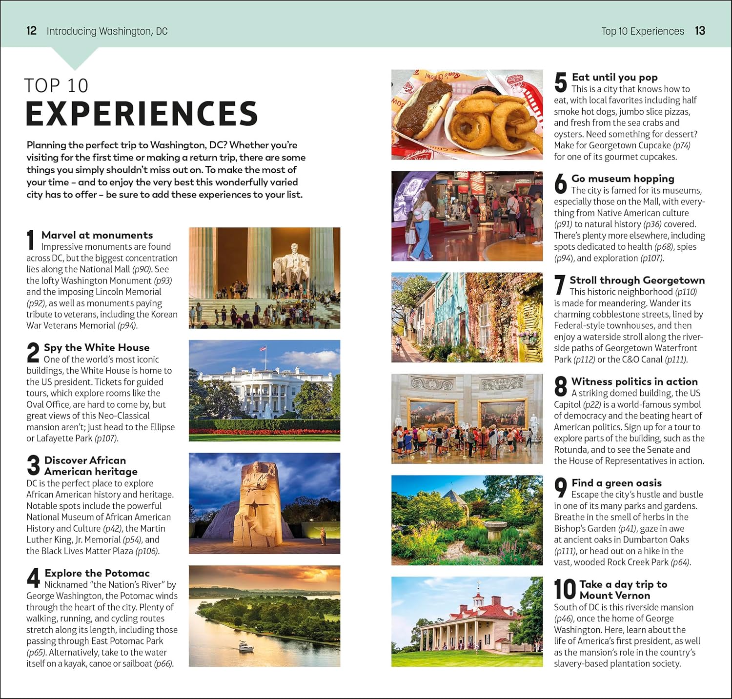 Take a stroll past the iconic White House, immerse yourself in the fascinating Smithsonian museums on the Mall, visit some of America's most cherished burial sites at Arlington National Cemetery, or step back in time at Mount Vernon. From Top 10 historic homes and buildings to the Top 10 sights off the beaten path, discover the best places to visit in Washington, DC with this easy-to-use travel guide.Inside Top 10 Washington, DC: