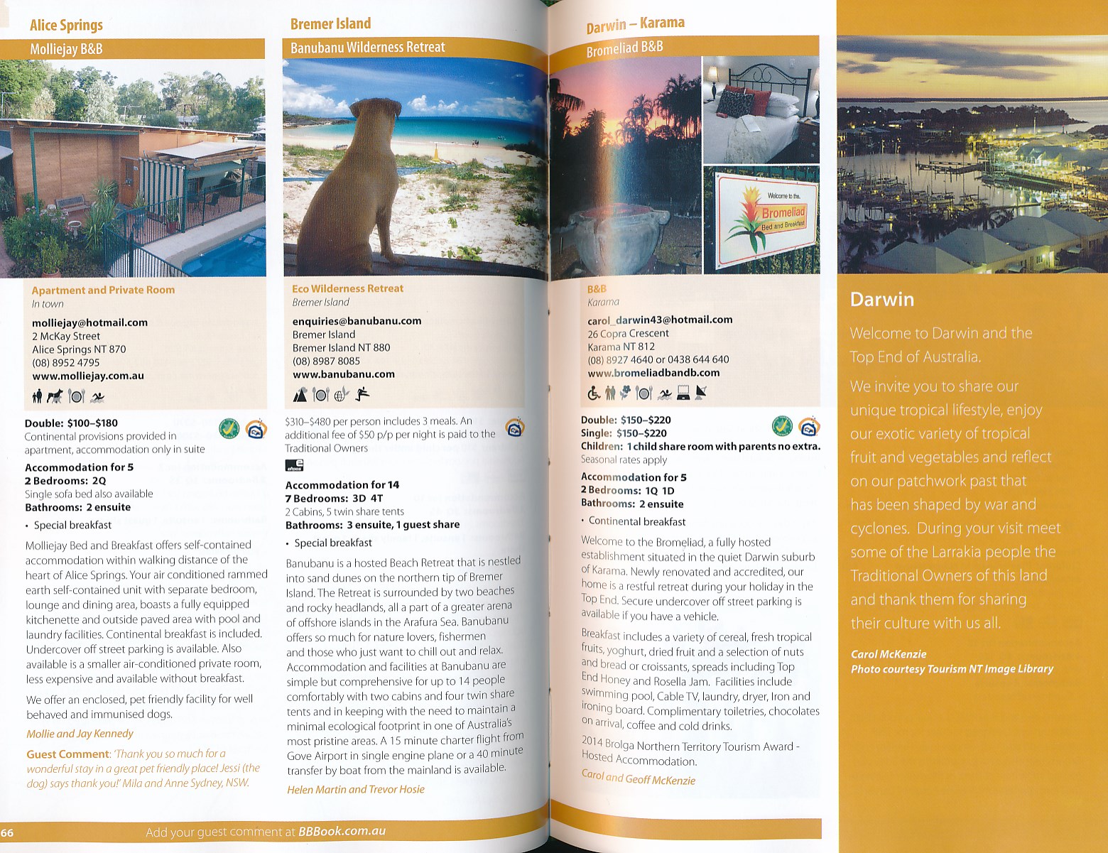 This title includes over 900 entries of bed & breakfast and similar styled accommodation from all across Australia. Accommodation styles include B&Bs, small hotels, city apartments, country cottages, eco-friendly getaways, family farmstays, romantic breaks and more.