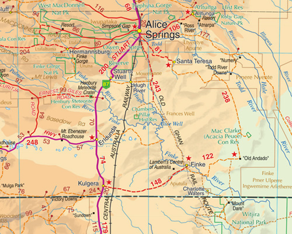 The most comprehensive road map available for Australia. The map features more roads and road distances than have ever been shown on a map of Australia, with reliable differentiation between major, minor, sealed and unsealed roads. A beautiful map of Australia.