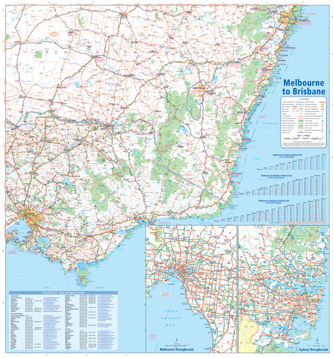 The Melbourne to Brisbane map is finally available again, but has undergone a complete transformation. The map is now larger, has a larger scale, is now printed on both sides, is more detailed and covers a larger area. In fact, it covers the whole south east corner of Australia. A huge amount of detail adds value to the product, including caravan parks and camping areas, tourist points of interest, 24 hour fuel stations and roadside rest areas. And of course we have made sure that it is right up to date.