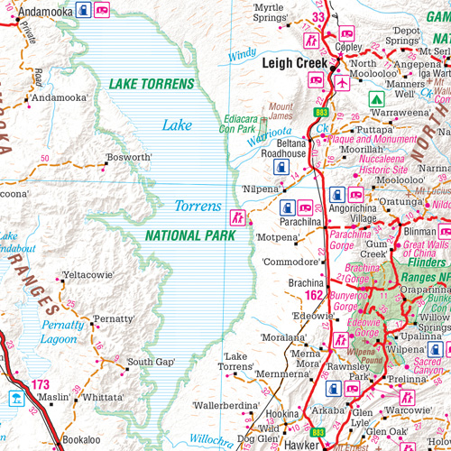 Great for using in the car, Hema's South Australia Handy Map clearly shows highways, minor and secondary roads, national and state routes and fully-indexed cities, towns and localities. Detailed road distances are also shown.