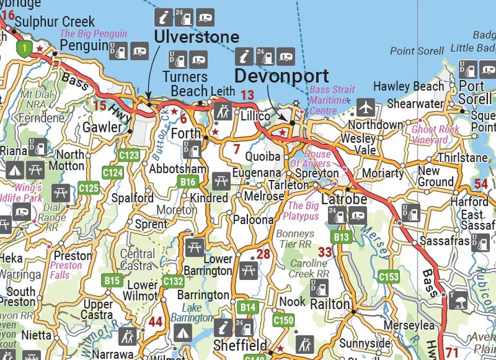 Wegenkaart - landkaart Tasmanië - Tasmania (tweezijdig) | Hema Maps (9321438002246)