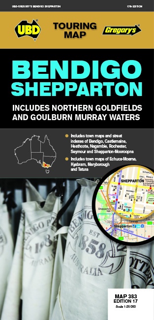 The latest edition of the Bendigo Shepparton regional touring map features a regional map with coverage from Leitchville and Strathmerton in the north, Creswick and Wallan in the south, Euroa in the east and Emu in the west.Also included is street level mapping and street indexes for Bendigo, Castlemaine, Maryborough, Shepparton Mooroopna and Seymour.