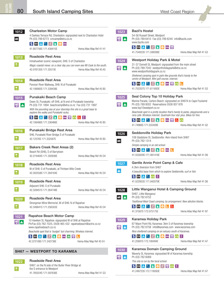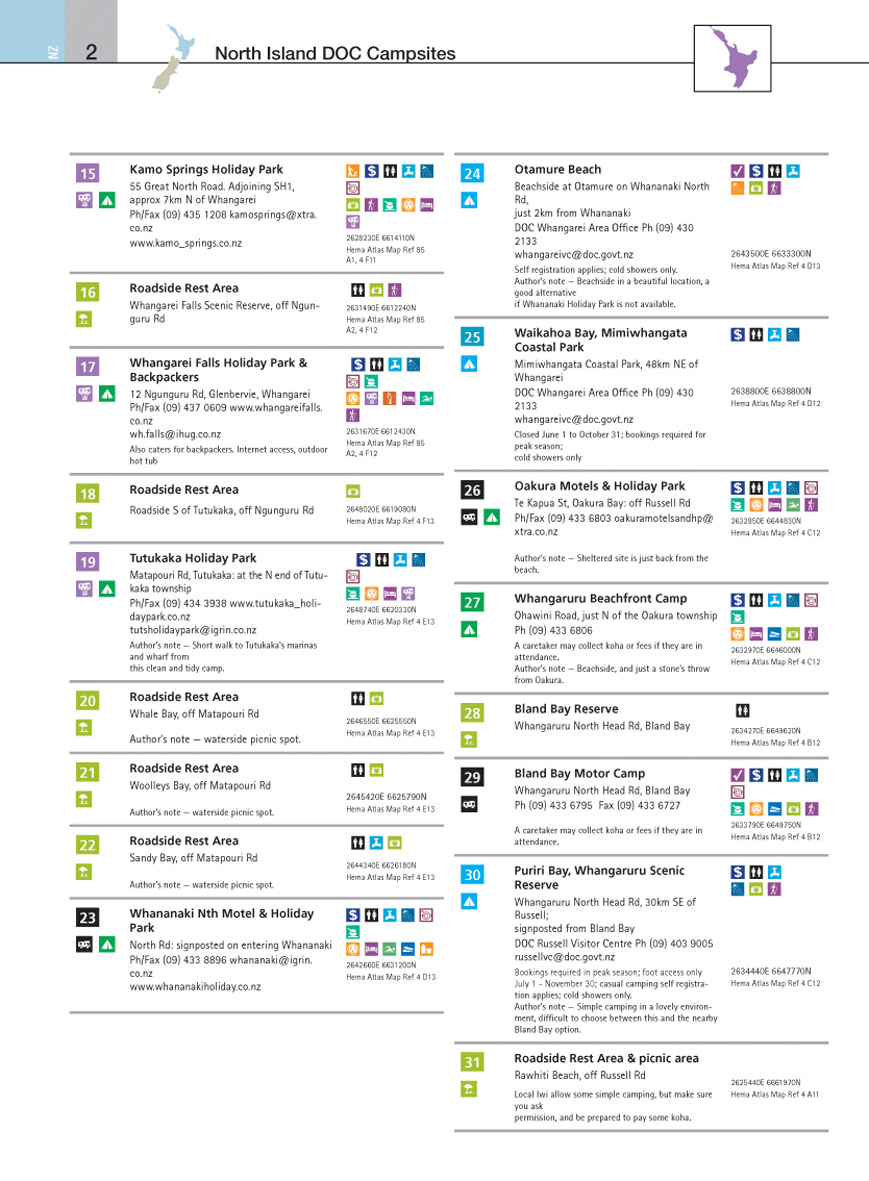 super gids! vrijwel alle campings staan er in, zeker leuk dat ook de kleine DOC-sites (campings van het department of conservation (een soort staatsbosbeheer)) er in staan. de kaart is super gedetailleerd en leidde ons zonder problemen door steden als Auckland en Christchurch, maar ook fantastisch door de kleine dorpjes en landweggetjes. In ons campervannetje was er genoeg plek voor het enorme boek.. zwaar, maar wel super fijn als je beide eilanden gaat bezoeken.