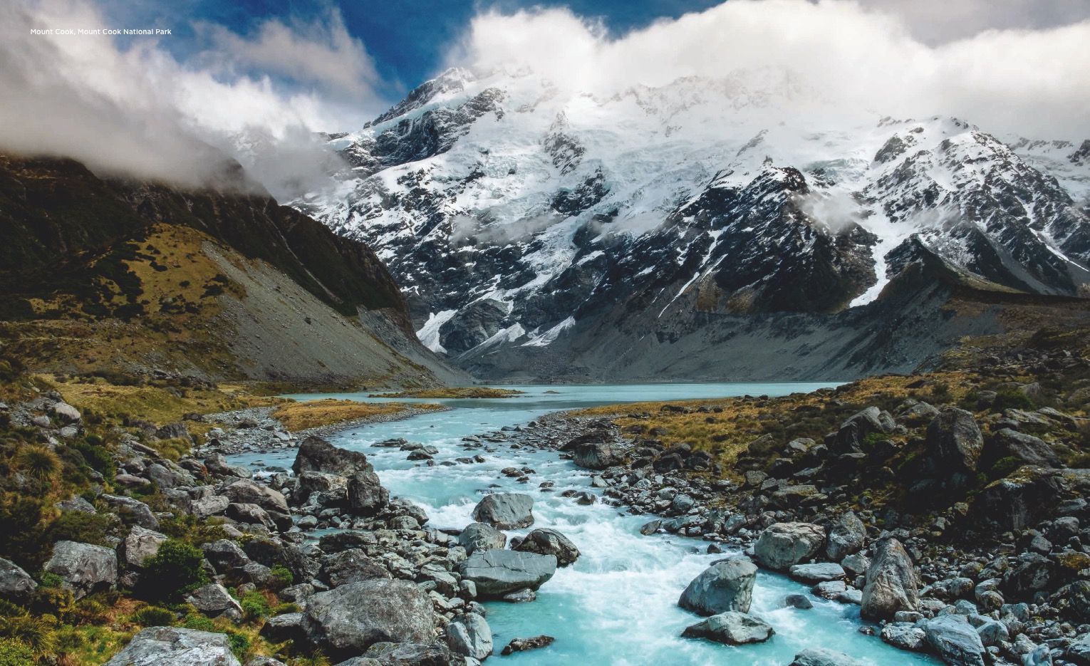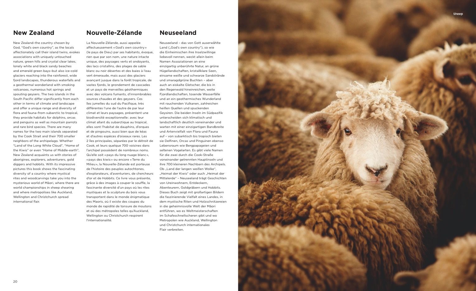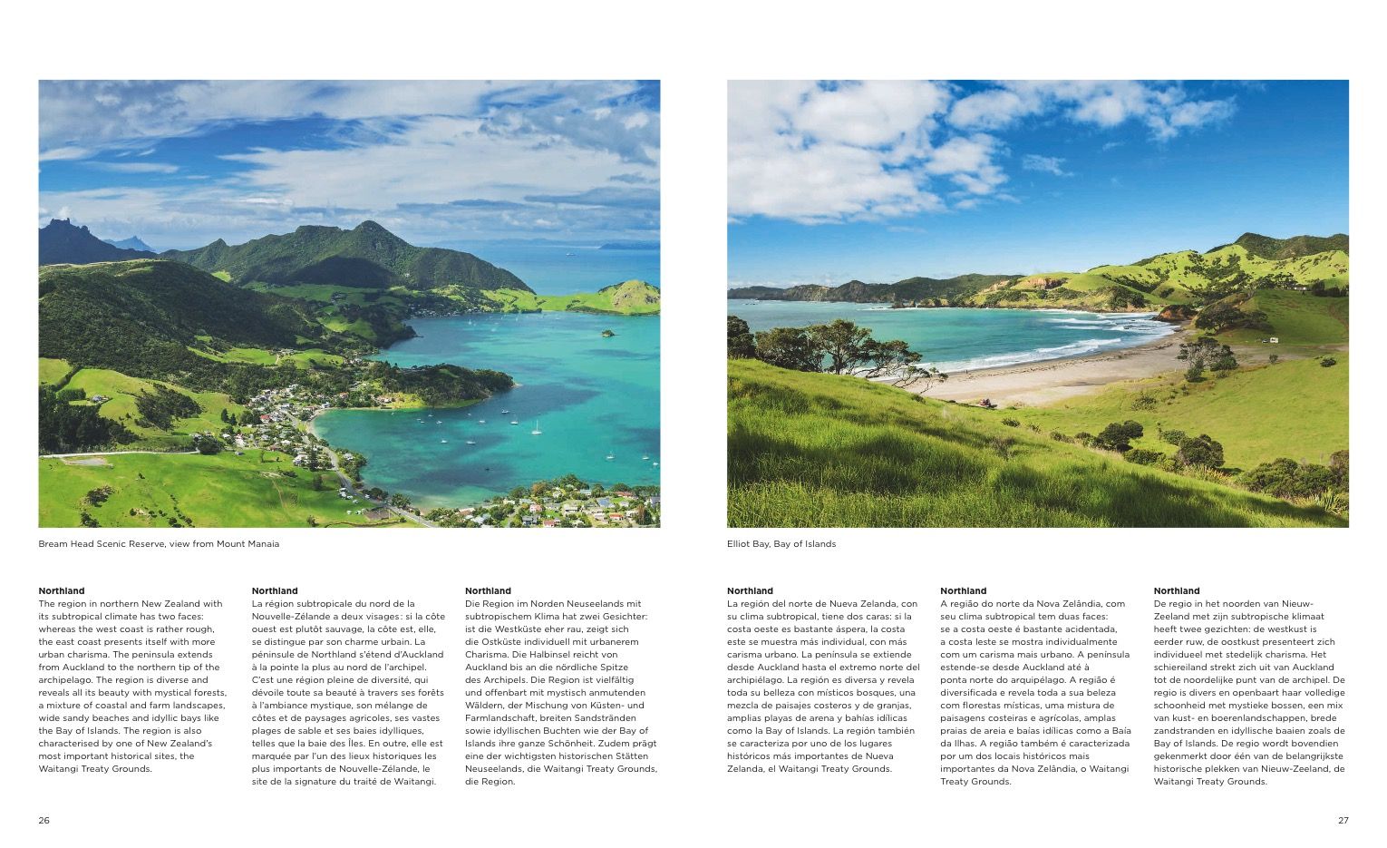 New Zealand-the country chosen by God, "God's own country," as the locals affectionately call their island twins, evokes associations with uniquely untouched nature, green hills and crystal clear lakes, lonely white and black sandy beaches and emerald green bays-but also ice-cold glaciers reaching into the rainforest, wide fjord landscapes, thunderous waterfalls, and a geothermal wonderland with smoking volcanoes, numerous hot springs, and spouting geysers.