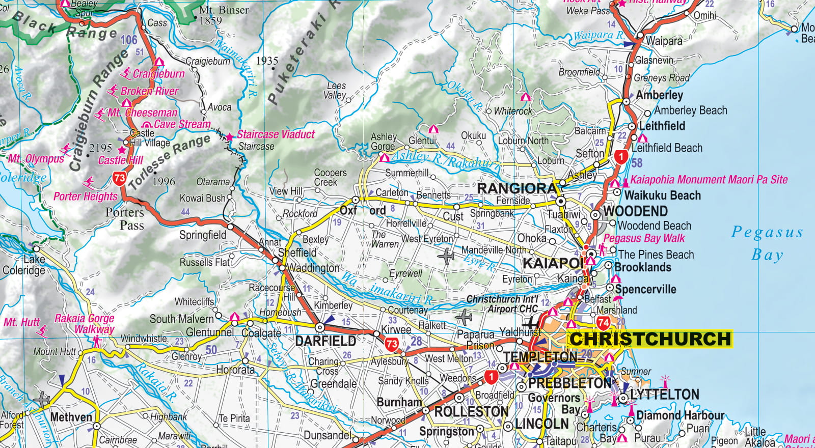 • Wegenkaarten: up-to-date wegennet, afstanden in kilometer, Nationale Parken, reliëf.