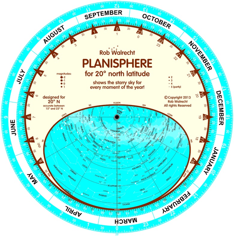 Sterrenkaart - Planisfeer 20 graden noorderbreedte (engelstalig) | Rob Walrecht Productions (9789080324398)