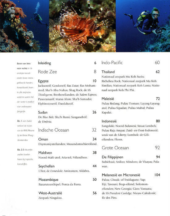 In dit boek worden meer dan 275 exotische duikplaatsen beschreven, in 5 oceanen en zeeën, en verdeeld over 24 landen. Dit is tropisch duiken op zijn best voor duikers van alle niveaus.