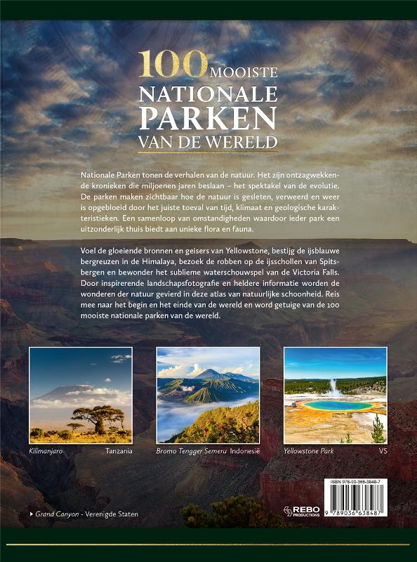 Nationale Parken tonen de verhalen van de natuur. Het zijn ontzagwekkende kronieken die miljoenen jaren beslaan – het spektakel van de evolutie. De parken maken zichtbaar hoe de natuur is gesleten, verweerd en weer is opgebloeid door het juiste toeval van tijd, klimaat en geologische karakteristieken. Een samenloop van omstandigheden waardoor ieder park een uitzonderlijk thuis biedt aan unieke flora en fauna. Voel de gloeiende bronnen en geisers van Yellowstone, bestijg de ijsblauwe bergreuzen in de Himalaya, bezoek de robben op de ijsschollen van Spitsbergen en bewonder het sublieme waterschouwspel van de Victoria Falls. Door inspirerende landschapsfotografie en heldere informatie worden de wonderen der natuur gevierd in deze atlas van natuurlijke schoonheid. Reis mee naar het begin en het einde van de wereld en word getuige van de 100 mooiste nationale parken van de wereld.