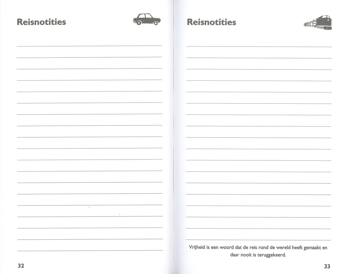 Schrijf alles op wat je onderweg tegenkomt. In het travel dagboek vind je tevens vele belangrijke adressen en andere tips. Een must voor iedere reiziger, jong of oud!