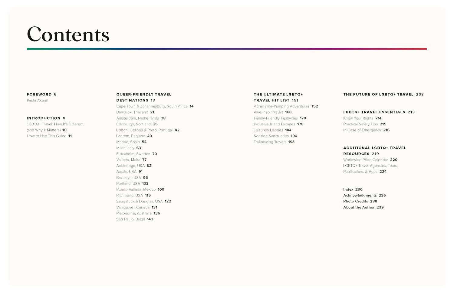 - Handy 'Know Before You Go' boxes for each destination share details on the local languages, currency, Pride celebrations, and information on when to go