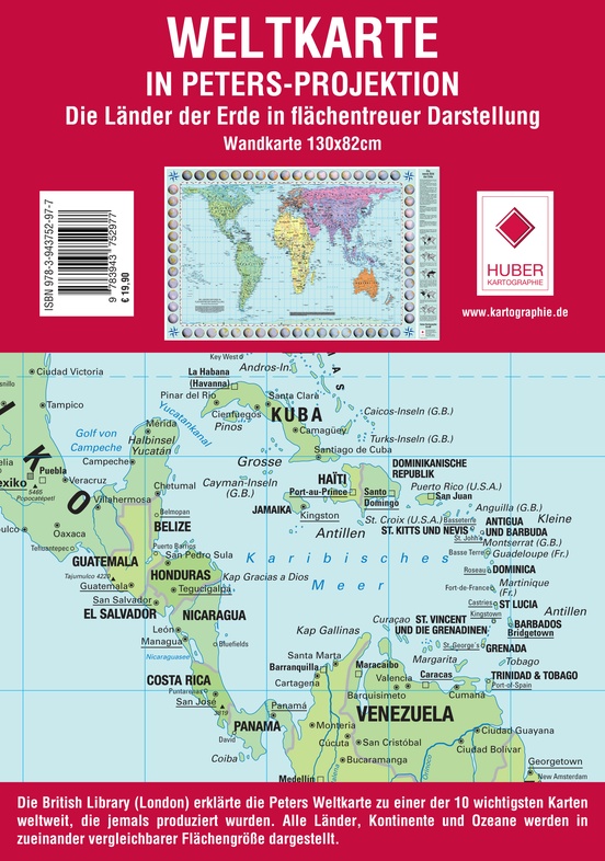 Wereldkaart Peters Projection - Peters Projectie 130 x 82 cm | Huber Verlag (9783943752977)