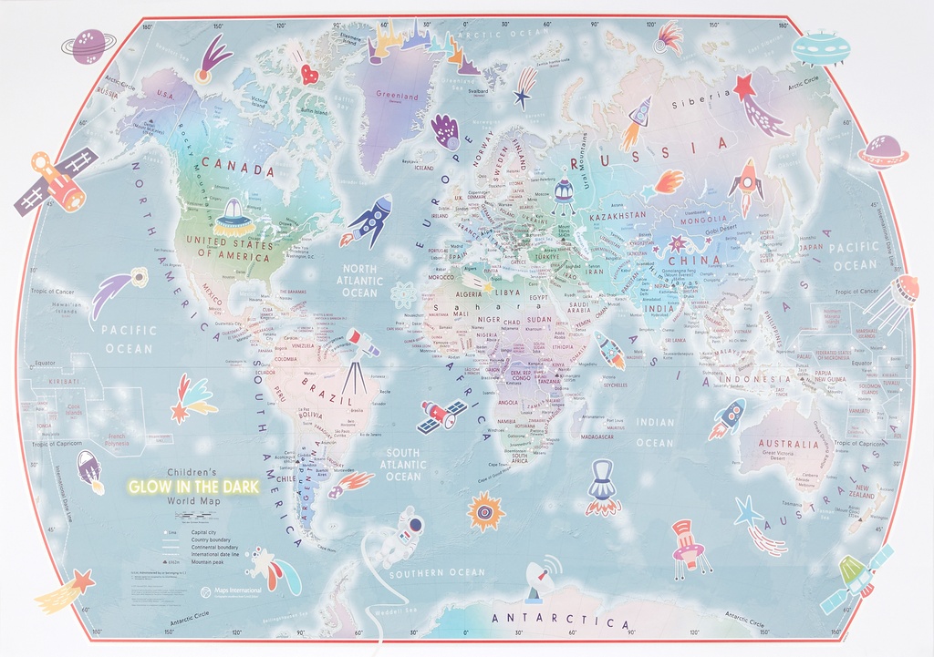 Kinderwereldkaart Children's world map glow in the dark | 85 x 60 cm | Maps International (9781912203864)