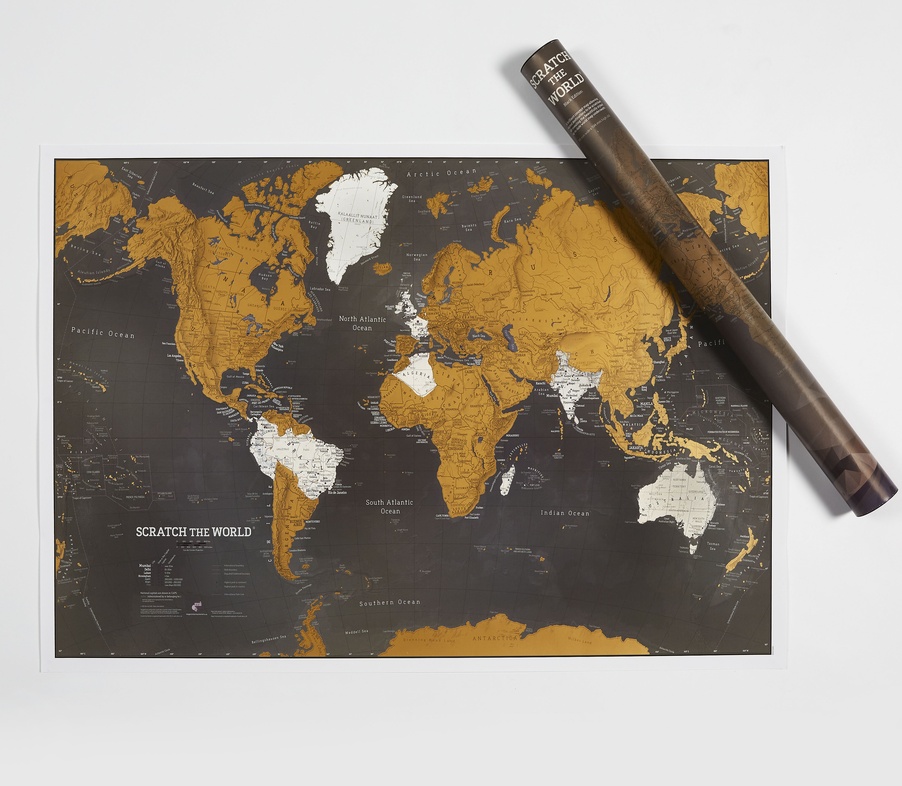 Neem simpelweg een muntje en begin met het wegkrassen van de bestemmingen welke je al bezocht hebt. Zo creëer je jouw persoonlijke en continu veranderende wereldkaart. Niet alleen de landen worden afgebeeld; maar ook de belangrijke steden op zowel de gouden toplaag, als op de wereldkaart eronder, waardoor je nog gedetailleerder kan krassen.