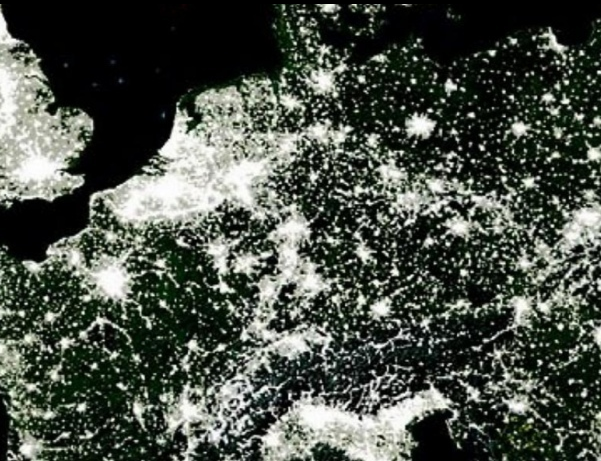 This intriguing map reveals in stunning detail the pulsating lights of the Earth at night. See where populations are most and least concentrated. The rare view is a composite image made by three satellites on cloud-free nights over a one-year period. In addition to showing lighted areas of the Earth, this map also features where fires rage and natural gas burn-off and night fishing locations.Reviews