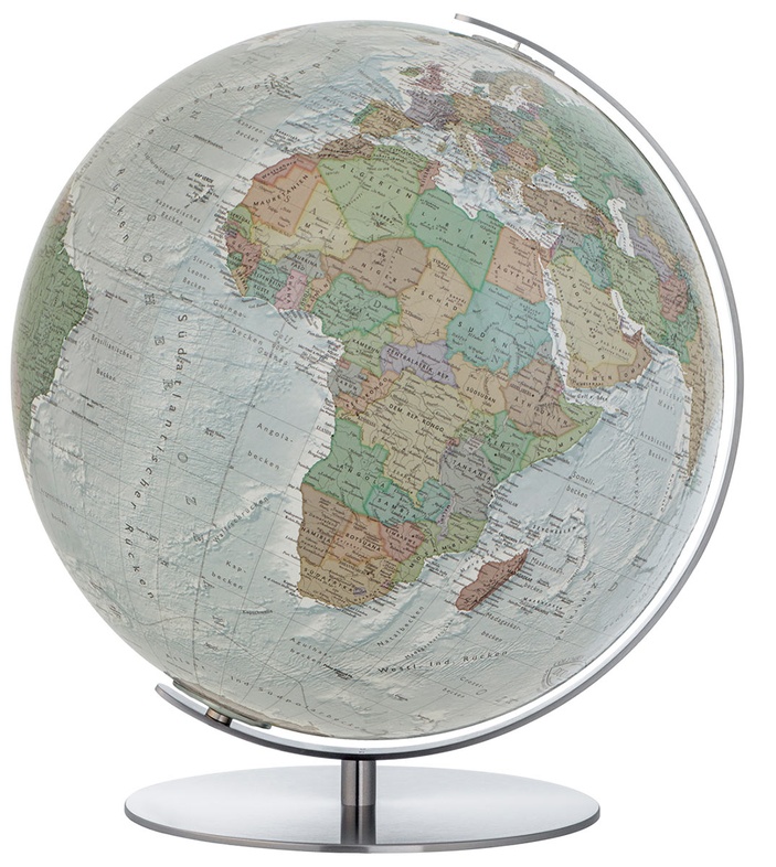 De jury van de toonaangevende Paperworld beurs in Frankfurt heeft deze globe een award toegekend vanwege haar klassieke, tijdloze elegantie gekoppeld aan een moderne uitstraling. Het kaartbeeld DUOALBA is in onverlichte toestand staatkundig met een zeereliëf dat duidelijk zichtbaar is. Met het licht aan toont de bol zijn natuurkundig gezicht.
