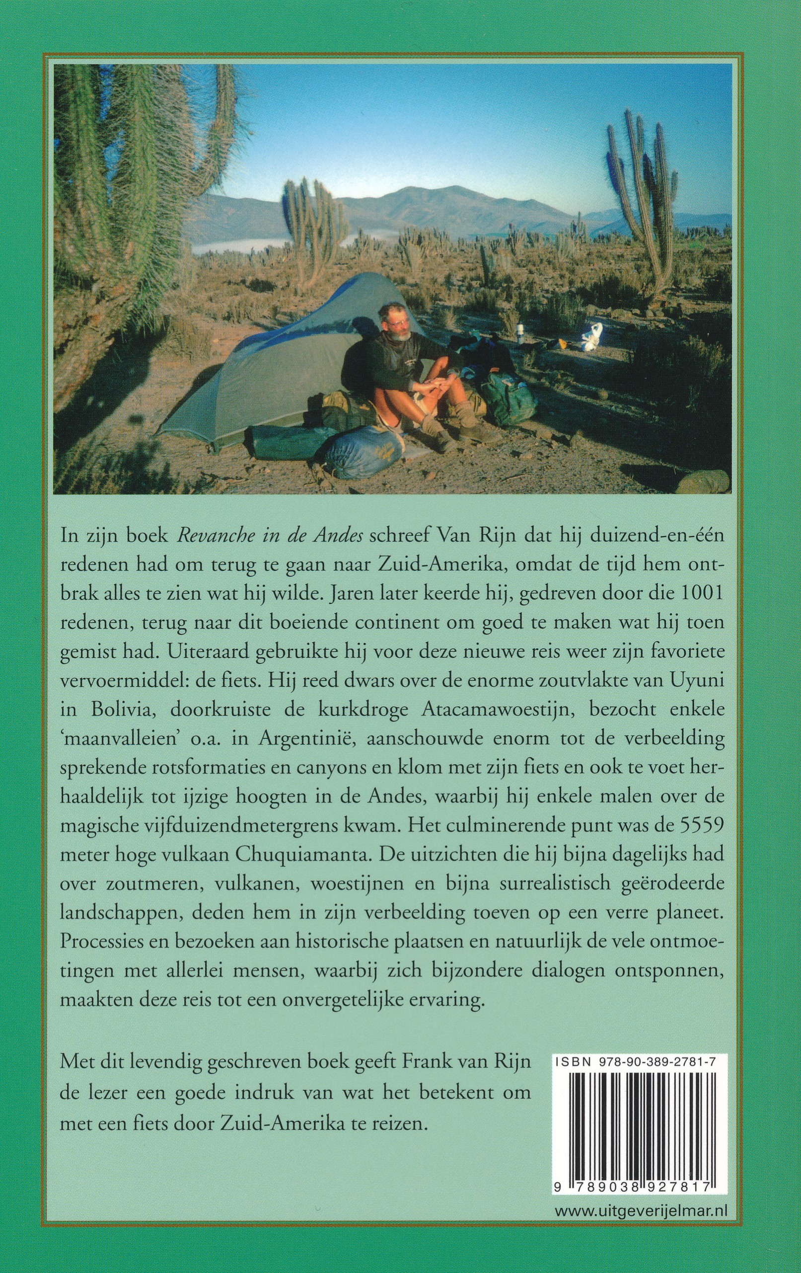 In zijn boek Revanche in de Andes schreef Van Rijn dat hij duizend-en-één redenen had om terug te gaan naar Zuid-Amerika, omdat de tijd hem ontbrak alles te zien wat hij wilde. Jaren later keerde hij, gedreven door die 1001 redenen, terug naar dit boeiende continent om goed te maken wat hij toen gemist had. Uiteraard gebruikte hij voor deze nieuwe reis weer zijn favoriete vervoermiddel: de fiets. Hij fietste dwars over de enorme zoutvlakte van Uyuni in Bolivia, doorkruiste de kurkdroge Atacamawoestijn, bezocht enkele ‘maanvalleien’ o.a. in Argentinië, aanschouwde enorm tot de verbeelding sprekende rotsformaties en canyons en klom met zijn fiets en ook te voet herhaaldelijk tot ijzige hoogten in de Andes. Een paar keer passeerde hij zelfs de magische vijfduizendmetergrens waar bergop fietsen zonder zuurstof een hele uitdaging is. Het culminerende punt was de 5559 meter hoge vulkaan Chuquiamanta. De uitzichten die hij bijna dagelijks had over zoutmeren, vulkanen, woestijnen en bijna surrealistisch geërodeerde landschappen, deden hem in zijn verbeelding toeven op een verre planeet. Processies en bezoeken aan historische plaatsen en natuurlijk de vele ontmoetingen met allerlei mensen, waarbij zich bijzondere dialogen ontsponnen, maakten deze reis tot een onvergetelijke ervaring.