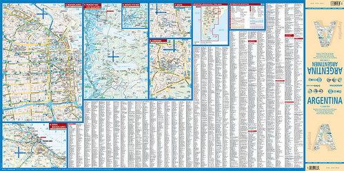 Mooi uitgevoerde wegenkaart van Argentinie met plankaartjes van de belangrijkste steden.