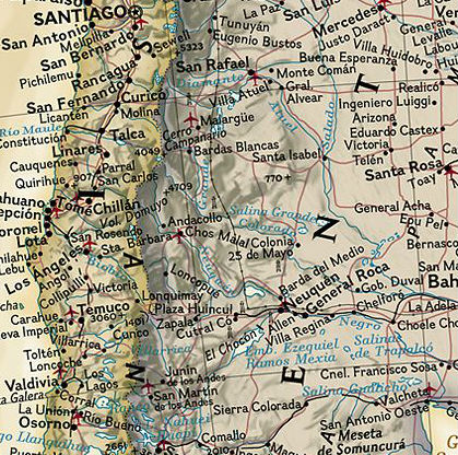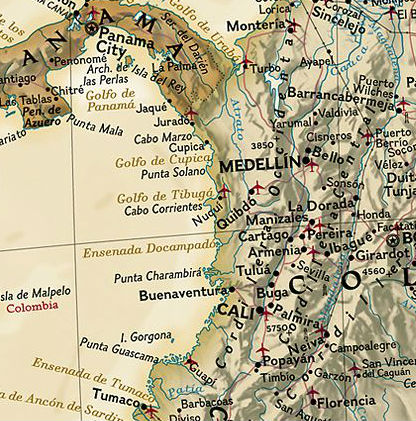 This elegant, richly colored map of South America shows political boundaries, place names, airports, major roads and highways, and other geographic features for the entire continent.