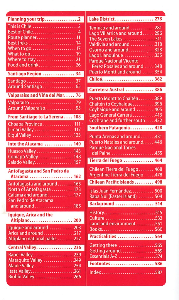- Great coverage of the top activities and sights in the region, including Easter Island, Chiloé, the wine routes, skiing, geysers and salt flats