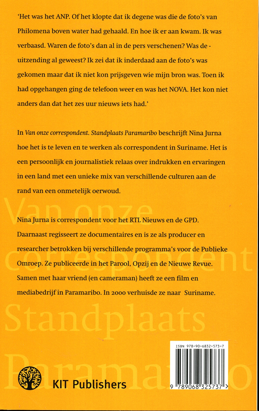 Tussen 1995 en 1999 is Nina Jurna vier keer op werkvakantie geweest in Suriname, onder meer om er te werken aan een documentaire over haar oudoom Louis Doedel. Met veel moeite nam zij na de opnames afscheid van het land om er in 2000 terug te keren als correspondente voor RTL Nieuws en Het Parool. In "Standplaats Paramaribo" beschrijft Nina het land dat een unieke mix is van culturen aan de rand van een onmetelijk oerwoud. Onderwerpen zijn Bouterse, Philomena Bijlhout, de regio en remigratie, maar ook haar werk als journalist/producer, de start van haar productiemaatschappij in Suriname en hoe zij sindsdien samen met haar vriend Dave tv-producties voor de Nederlandse en Surinaamse tv verzorgt. Naast het tv-correspondentschap maakt Nina Jurna documentaires en schrijft zij artikelen voor Het Parool en de GPD.