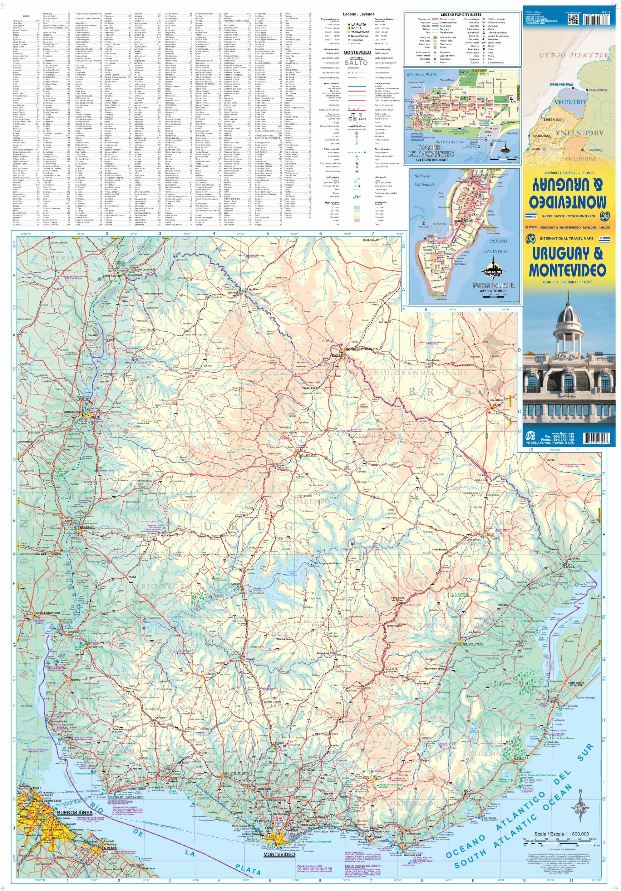 This map includes insets of the port city of Colonia (a UNESCO World Heritage Site) and the popular resort town of Punta del Este have been added. Also included on the reverse is our map of Uruguay.
