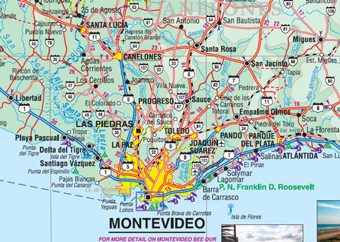 Wegenkaart Uruguay en Stadsplan Montevideo